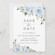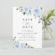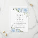 Invite friends and family in style and set the tone for your special day with this charming save the date card. Design features dusty blue watercolor flowers and greenery on white background.
