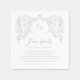 Elegant sketched vintage flourish frame with couple's monogram and stylish script font in dusty blue colour, modern and classy, great fun facts wedding napkins for modern classic wedding, luxe vintage wedding and romantic formal wedding.