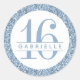 Dusty Blue Glitter Sticker with muted periwinkle blue coloured customisable birthday age and name text. Great accent for a modern and elegant birthday celebration, sweet sixteen, 16th birthday party, or Quinceanera. The artwork is a printed image of glitter - no real glitter is used. Visit the Paper Grape Zazzle shop for coordinating party goods, stationery, and invitations.