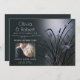Rustic Nature Photo Engagement  - Your photo with this deep dusty blue grey theme, a soft glow behind a pretty display of  cattails and grasses with sparkly dragonflies glistening in the glow -  the back is a coordinating colour  easy to customise template - original artwork by WhimsicalArtwork™ for  theBarefootBride ™. This is part of a complete wedding stationery suite, as well as Baby Shower, Birthday and Christening Invitations. For question or assistance please contact designer indy.designer@yahoo.com.
