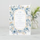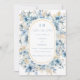 Dusty Blue Gold Floral Bloom all in one Wedding Invitation
