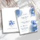 This beautiful design features delicate dusty blue watercolor flowers accented with a touch of rustic gold glitter, creating a sophisticated yet charming atmosphere for your special day. Personalise it with your names, wedding date, time, venue details (including city and state), and a "reception to follow" message.