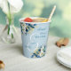 This elegant Dusty Blue Gold Glitter Floral Wedding paper cup can be personalised with your names and wedding date.