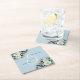 Dusty Blue Gold Glitter Floral Wedding Square Paper Coaster