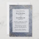 Elegant invitation for your dusty blue wedding. The background is a dusty blue ombre colour on a wrinkled paper texture with gold glitters on the top and bottom. The texts are easily editable online.