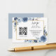 Dusty Blue Gold Pastel Floral QR Code Wedding RSVP Enclosure Card