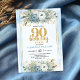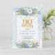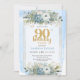 Dusty Blue Gold Sparkle Elegant 90th Birthday Invitation