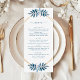 Present your wedding menu with elegant style. This card combines soft dusty blue tones, delicate greenery, and clean geometric lines for a modern, polished look that complements your stationery suite. Perfect for displaying at place settings or on a menu board, it adds a thoughtful, cohesive touch to your reception decor.