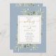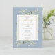 Dusty Blue Greenery Gold Geometric Script Wedding Invitation