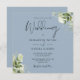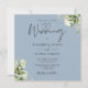 Dusty Blue Greenery Leaves Monogram Square Wedding Invitation