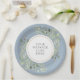 Dusty Blue Greenery Leaves Watercolor Celebration Paper Plate