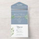 Dusty Blue Greenery Photo Wedding All In One Invitation