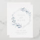 Modern wedding invitation featured rustic dusty blue watercolor botanical foliage greenery design with real rose gold foil leaves and geometric frame, simple and elegant, great for fall rustic wedding, winter botanical garden wedding.
