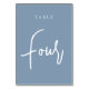 Dusty Blue Hand Scripted Table FOUR Table Number