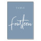 Dusty Blue Hand Scripted Table FOURTEEN Number