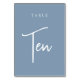 Dusty Blue Hand Scripted Table TEN Number