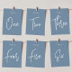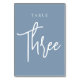 Dusty Blue Hand Scripted Table THREE Number