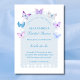 Personalise this enchanting Butterfly Bridal Shower Invitation, and set the tone for a delightful, boho affair. Adorned with a whimsical array of pink, blue, and purple butterflies fluttering gracefully amidst delicate white flowers, this invite captures the essence of romance and whimsy. Set against a backdrop of dusty blue and crisp white, it exudes an air of elegance and sophistication, perfect for a pretty, boho-inspired bridal shower. With the phrase "He gives me butterflies" it will add a touch of sentimentality, sure to elevate your bridal shower party or picnic to a magical affair. Embrace the beauty of love and nature with this Butterfly Bridal Shower Invitation, the epitome of boho floral chic.