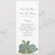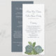 Dusty blue hydrangea floral bouquet in a beautiful Wedding Ceremony Program. A simple blue flower design with a beautiful botanical script.