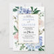 Dusty blue hydrangeas pastel pink roses wedding invitation
