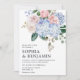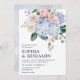 Dusty blue hydrangeas pastel pink roses wedding invitation