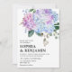 Dusty blue hydrangeas pastel pink roses wedding invitation