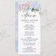 Dusty blue hydrangeas pastel pink roses wedding menu
