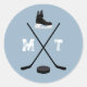 Dusty Blue Ice Hockey Classic Distressed Monogram Classic Round Sticker