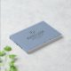Elegant and romantic wedding guestbook in dusty blue and gold with interlocked heart above your shared last name in classic gold foil lettering, your names beneath and then wedding date. Dusty blue and gold wedding guestbook with romantic hearts intertwined and your names in a tasteful design. Simply romantic guestbook for your wedding with a neutral and romantic design with two hearts, your last name, names, and wedding date in gold foil against a soft muted blue background.