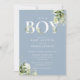 Dusty Blue Its A Boy Greenery Letter Baby Shower Invitation