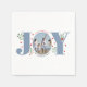 Dusty blue Joy with berries Christmas photo Holiday paper napkin. It showcases the word "JOY" with red berries and greenery while instead of the letter "O" there is your family photo.