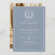 Dusty Blue Leafy Crest Monogram Photo Wedding Invitation