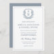 Dusty Blue Leafy Crest Monogram Wedding Elegant Invitation