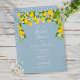 Featuring lemons greenery on a dusty blue background, this elegant botanical bridal shower or couples shower invitation can be personalised with your special event information. Designed by Thisisnotme©