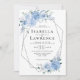 Dusty Blue Light Floral Silver Geometric Wedding Invitation