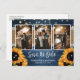 Dusty Blue Lights Sunflower 3 Photo Save The Date Announcement Postcard