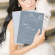 Elegant modern minimalist script dusty blue with floral magnolia wedding invitation.
