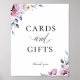 Elegant watercolor flowers and foliage frame in trendy shades of dusty blue, mauve and white, personalised wedding "cards and gifts" sign poster. Modern typography design style mixes script with bold type.