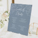 Dusty Blue Minimal Leaf Wedding Bar Drinks Sign