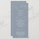 Minimal wedding program featuring modern script font on a dusty blue background. All the wedding ceremony information and the wedding party's name listed on this program.
