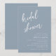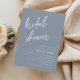 Celebrate the bride-to-be with timeless elegance using this dusty blue minimalist bridal shower invitation featuring a delicate handwritten script font. Designed with clean lines and soft, refined typography, this invitation is perfect for modern, romantic celebrations. Easily customize the details to match your event and create a cohesive, sophisticated look. Ideal for chic bridal showers, garden parties, or intimate gatherings.