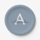 Dusty Blue Minimalist Modern Monogram Elegant Paper Plate