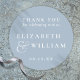 These minimalist elegant monogram wedding thank you stickers can be personalised with your details in modern typography on a dusty blue background. Designed by Thisisnotme©