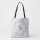 Dusty Blue Minimalist One Side wildflowers Boho Script Initial Monogram Tote Bag.