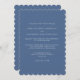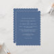 This timeless wedding invitation features a clean serif font in all caps, standing out beautifully in white against a dusty blue background. The rectangular shape, enhanced with scalloped edges, creates a classic and sophisticated look. Perfect for those who appreciate simplicity with a touch of traditional charm, this design effortlessly sets the tone for your special day.