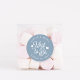 Minty fresh wedding favour stickers feature "mint to be" in white script lettering accented with hearts, on a dusty blue background. Personalise with your names and wedding date.
