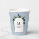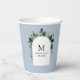 Dusty Blue Modern Botanical monogrammed wedding Paper Cups