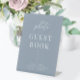 Dusty Blue Modern Elegant Wedding Photo Guestbook Pedestal Sign