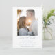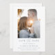 Modern, elegant save the date card features a minimalist dusty blue and white design. Personalise with your wedding details with the easy to edit template featuring an elegant script font and classy serif font. Then, replace the photo on the front with your own. Check out matching items in the “Dusty Blue Modern Elegant” collection.