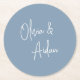 Dusty Blue | Modern Handwritten Script Wedding Round Paper Coaster